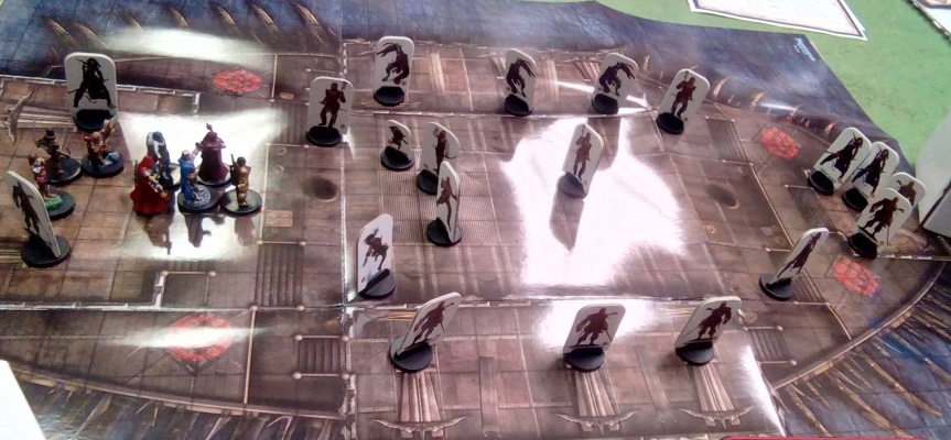 Meanwhile, Melcer was attacked from behind by an "Organ Filch", a creepy Jack-the-Ripper / Phantom-of-the-Opera -looking dude, wielding a scalpel. This was a pretty difficult fight, and we used up a lot of healing resources. The good news was that the cramped room kept us from getting surrounded, so we rarely faced more than three enemies at a time. Robb finished off the Organ Filch. When we were down to three enemies, Melcer hit them with a Fiery Volley, taking out one and nearly finishing the other two. Halfbeard killed the final orc.
